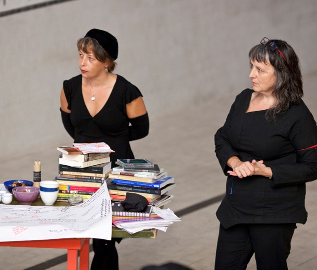 En art performance depuis 1978, Sylvie Tourangeau s’intéresse au déploiement de la conscience performative à travers des actions minimales qui renchérissent la qualité de présence, soutiennent l’intensité et personnifient le lien avec le spectateur. Performances, art relationnel, rituels de circonstances et animation d’atelier sont des pratiques dans lesquelles elle s’investit. Elle a publié quelques livres d’artiste et plus d’une trentaine d’articles. En collaboration avec Anne Bérubé et Victoria Stanton, elle travaille présentement à une publication sur la pédagogie, le vocabulaire et la notion du performatif développés lors de formations et résidences qu’elle donne depuis 1983.