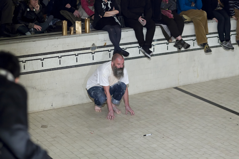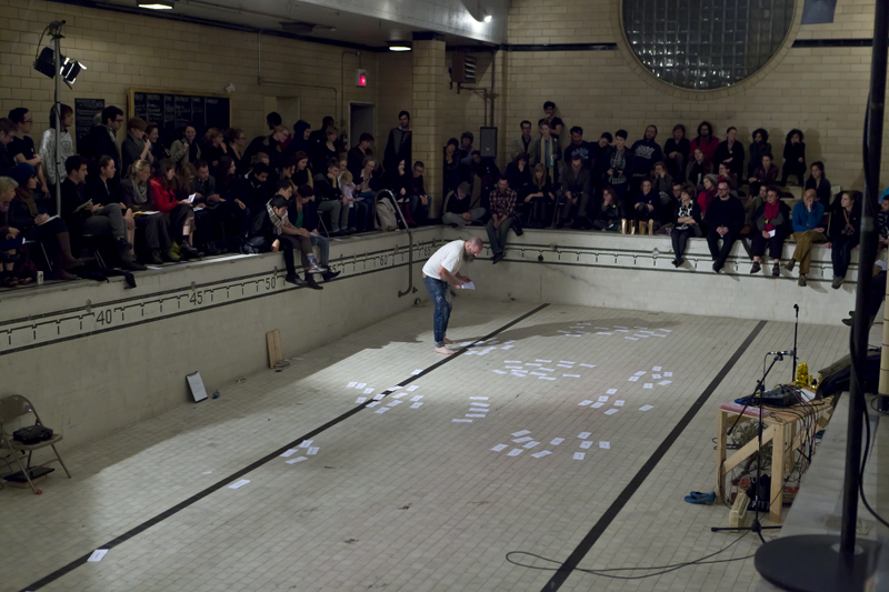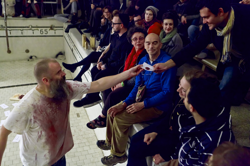Umwege auf der Luftlinie, 2011 Photo : Johannes Lothar Schröder Jörn J. Burmester, artiste en performance, commissaire et dramaturge, vit et travaille à Berlin. Il a étudié au programme de Applied Theatre Studies à l’Université Justus-Liebig à Gießen, Allemagne et à New York, et a gradué de Justus-Liebig-University, Gießen, en 1995. Bien qu’il travaille au sein de compagnies de théâtre indépendantes depuis 1980, sa pratique artistique individuelle a débuté avec une série de présentations performatives sur le sujet de la guerre en Afghanistan (The Rambo Lectures, 2001-2003). Depuis, le texte est au cœur de ses performances. Dans ses plus récentes œuvres, il questionne les contraintes de la notion d’auteur en se servant de textes dont la forme est non-linéaire et coopérative. Cette stratégie se retrouve aussi dans sa pratique de chanteur et écrivain pour le groupe de musique expérimentale Das Prinzip avec Henrik Vestergaard Friis. Il a présenté ses performances individuelles et collectives à travers l’Europe.