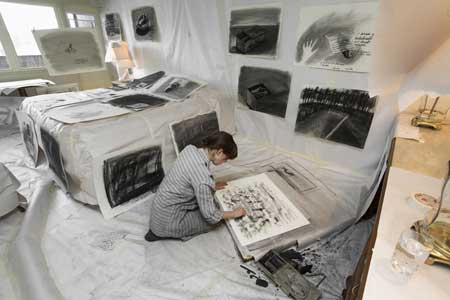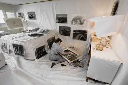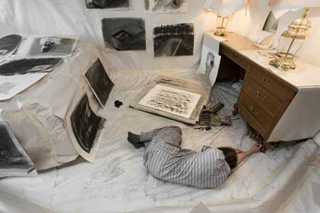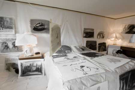 Excavation Drawings is an installative performance by Montreal artist Vida Simon, who will live and work for six days in a hotel room located in downtown Montreal, thus creating an open, living work. As the room is transformed into an ambivalent space, the performance explores the relationship between drawing and the context of its inscription, both symbolic and physical.