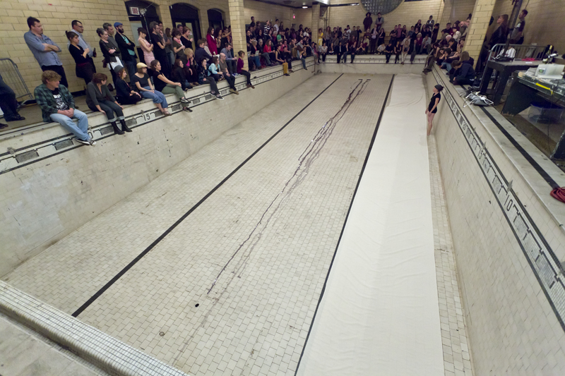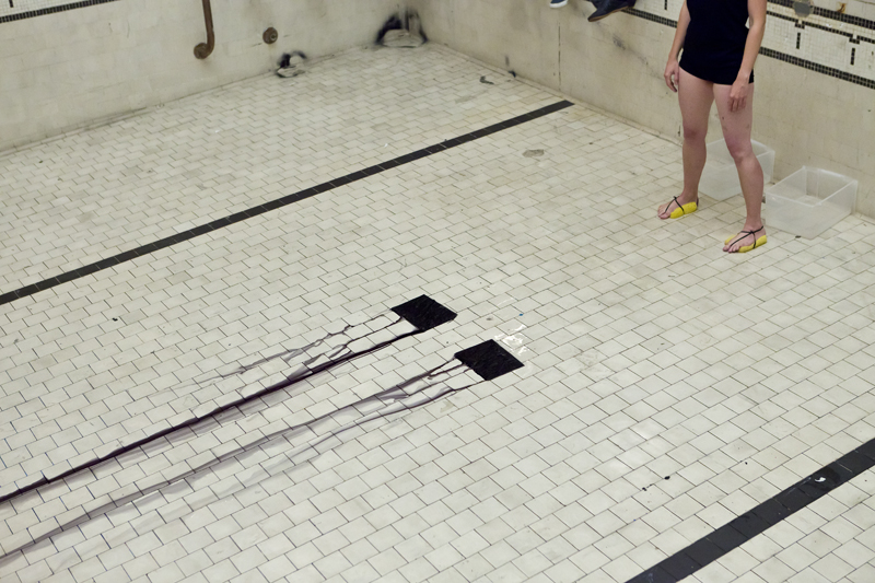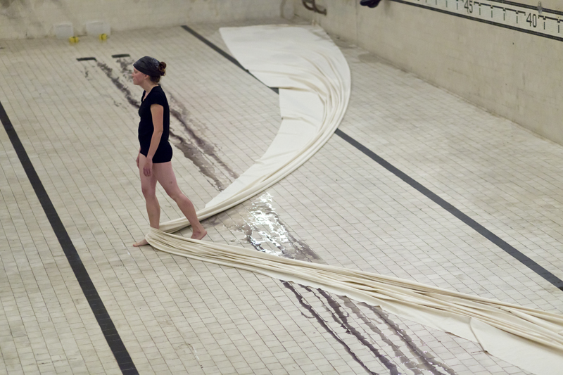 Untitled, 2011 Photo: Luis Alvarez Alice De Visscher lives and works in Brussels (Belgium). In her performances, she physically and poetically explores the properties of an object, her body, and space, as well as the the relationships they share. While creating strange images or actions, she seeks to provoque the public’s imagination. Her interest in the exploration of materials (including the material of the body) is used to break down pre-conceived meanings by juxtaposing elements to create new and peculiar associations between everyday life objects and herself. The artist’s works focuses mainly on performances and videos.
